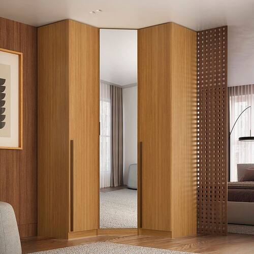 O Guarda Roupa de Canto Obliquo 3 portas Altezza Trend é para você que quer aproveitar aquele cantinho do quarto, com um móvel de qualidade, com design sofisticado e com ótima divisão interna. É ideal para você planejar seu quarto da forma que quiser, utilizando melhor o espaço do seu cômodo, com móveis bonitos e de qualidade! A altura é um dos maiores diferenciais, possui 2,40m, uma das mais altas do mercado. O design é inspirado nas tendências dos móveis planejados, módulos totalmente compostos por painéis de 15cm 100% MDF , pintado em pintura texturizada com 7 camadas de tinta, conferindo resistência à riscos e batidas. Dobradiças com amortecedor (Slow Motion). Porta com espelho inteiriço (sem emendas), com 5 dobradiças na porta de espelho para melhor estrutura, corrediças telescópica. Acabamento da Prateleira: Pintura Texturizada UV Escala de Brilho da Prateleira: Fosco Possui Cabideiros: Sim Acabamento da Gaveta: Pintura Texturizada UV Escala de Brilho da Gaveta: Fosco Material do Puxador da Gaveta: Plástico Possui Organizador de Gaveta: Não Acabamento da Porta: Pintura Texturizada UV Escala de Brilho da Porta: Fosco Material do Puxador da Porta: MDF Altura do Espelho: 238,5 cm Ambiente Principal: Quarto codigo_ean: 7900288168719 Complexidade da Montagem: Alta: deve ser montado por um montador especializado Cor: Freijó Cor do Produto: Freijó Cor Interna: Freijó Escala de Brilho: Fosco Espessura da Estrutura (mm): 15 mm Espessura das Portas (mm): 15 mm Espessura das Prateleiras (mm): 15 mm Espessura do Espelho: 3 mm Espessura do Fundo (mm): 3 mm Espessura do Fundo das Gavetas (mm): 15 mm Formato do Espelho: Retangular Guarda-Roupa Suporta Até (kg): 200 kg Itens Inclusos: 1 Guarda-Roupa, Kit Ferragens e Manual de Montagem Largura do Espelho: 50,5 cm Linha ou Coleção: Altezza Manual de Especificação Técnica: https://product-hub-prd.madeiramadeira.com.br/682869708/documents/e43d6c5f-a0f8-4ae3-89cb-0fe6719451092915342559817467929847434.pdf Manual de Montagem e Instalação: https://product-hub-prd.madeiramadeira.com.br/682869708/documents/ea6e0e6c-3360-4d3b-97ee-d80f564d60f52915341559817467929749247.pdf Marca: Belmax Material da Gaveta: MDF Material da Porta: MDF Material da Prateleira: MDF Material Principal: MDF modular: Não Necessita Montagem: Sim Origem do Produto: Nacional Peso: 231 kg Peso Máximo por Gaveta: 15 kg Peso Máximo por Prateleira: 15 kg Porta Janelada: Não Possui Calceiros: Não Possui Capelinha: Não Possui Espelho: Sim Possui Espelho Interno: Não Possui Ganchos: Não Possui iluminação: Não Possui Nichos: Não Possui Painel de TV: Não Possui Pés: Não Possui Portas: Sim Possui Prateleiras: Sim Produto Montado: Sim Quantidade de Cabideiros: 02 Cabideiros Quantidade de Espelho: 01 Quantidade de Gavetas: 03 Gavetas Quantidade de Portas com Espelhos: 1 Porta com Espelho Quantidade de Prateleiras: 12 Prateleiras Recomendações de Uso, Manutenção e Limpeza: Utilizar pano seco. Sistema de Montagem: Parafusos, cavilhas. Tipo de Corrediça da Gaveta: Metálica Telescópica Tipo de Dobradiça/Corrediça da Porta: Telescópica Tipo de Fixação do Espelho: Molduras Tipo de Gaveta: Interna Tipo de Guarda-Roupa: Solteiro Tipo de Puxador da Gaveta: Externo Tipo de Puxador da Porta: Externo