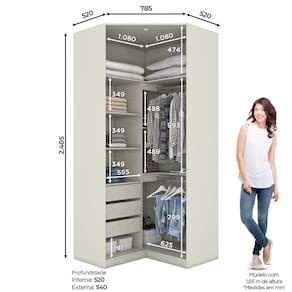 O canto closet atende diversas necessidades de espaco, oferecendo mais praticidade no seu dia a dia, e compacto e bem planejado, perfeito para a organizacao, deixando o ambiente ainda mais aconchegante e sofisticado.