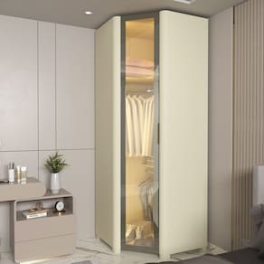 Guarda Roupa de Canto Modulado com LED e Vidro Reflecta 1 Porta com Pes MDF Innova Gelius - Off White