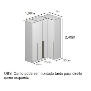 O Guarda Roupa de Canto Reto 4 portas Altezza Slim é para você que quer aproveitar aquele cantinho do quarto, com um móvel de qualidade, com design sofisticado e com ótima divisão interna.