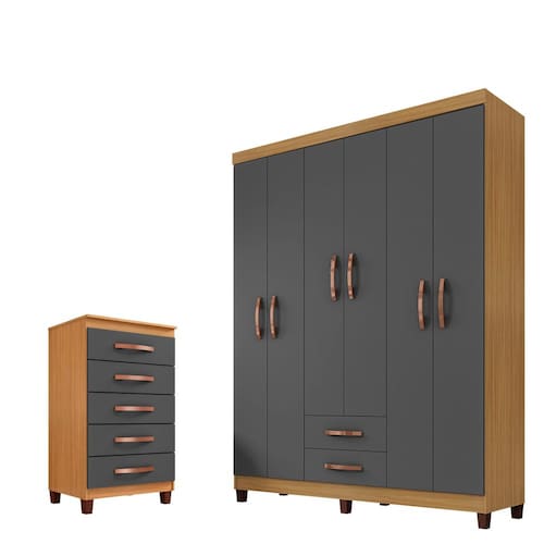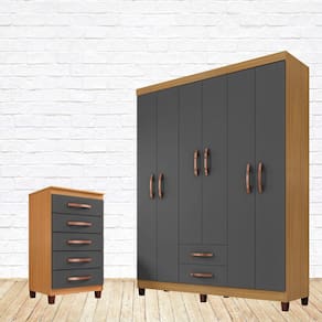 Com um visual elegante nas cores Carvalho Americano e Grafite, este conjunto é a combinação perfeita de funcionalidade e estilo, elevando a decoração do seu quarto. Garanta já o seu