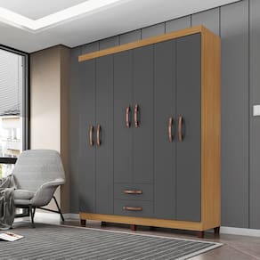 Organize seu espaço com elegância e funcionalidade com o Guarda Roupa de Casal 6 Portas e 2 Gavetas da ÉdeCasaMóveis. Projetado para otimizar o armazenamento, ele conta com 5 prateleiras e 2 gavetas com amplo espaço para guardar roupas e acessórios. Com cabideiros metálicos e acabamento em pintura UV texturizada, este roupeiro oferece durabilidade e beleza.