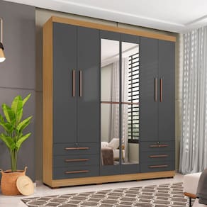 Apresentamos o incrível Guarda Roupa De Casal 6 Portas e 6 Gavetas Com Espelho Durham, uma peça de mobiliário que combina elegância, funcionalidade e durabilidade para transformar o quarto do casal em um espaço organizado e charmoso.