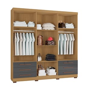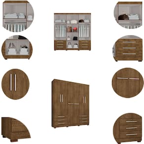 Com 6 gavetas e 6 portas, este guarda-roupas oferece amplo espaço de armazenamento para roupas, acessórios e objetos pessoais. As prateleiras suportam até 5 kg, enquanto as gavetas podem suportar até 3 kg cada. Além disso, ele possui 2 cabideiros em metal e 12 puxadores cromados que complementam seu design moderno.