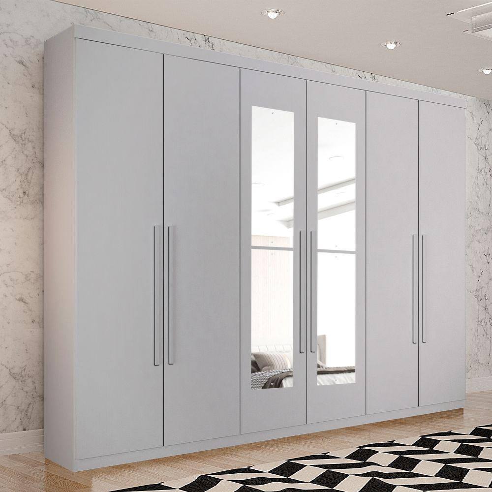 Guarda-Roupa Casal Mademarques Sevilha com 2 Portas, 6 Gavetas, 10 Prateleiras e Espelho - 228cm de largura