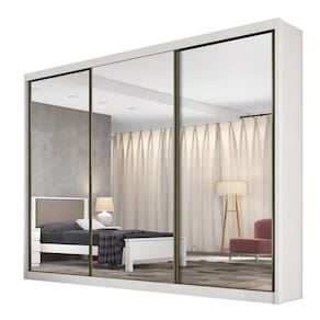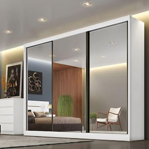 Modelo: Londres Material: MDF Material dos cabideiros/calceiro: Alumínio Pintura: UV Divisão interna: Ele e Ela Corrediças: Telescópicas Trilhos: Em alumínio Espaço para longo: Sim Peso suportado por gaveta: 5 Kg Peso suportado por prateleira: 10 Kg Quantidade de cabideiros: 3 Quantidade de calceiros: 1 Quantidade de espelhos: 3 Quantidade de gavetas: 6 Quantidade de portas: 3 Quantidade de prateleiras: 8 Tipo de portas: De Correr Necessita Montagem: Sim Complexidade de Montagem: Médio Sistema de Montagem: Cavilhas, Minifix e Parafusos Quantidade de Volumes: 8