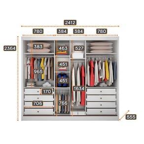 Marca: Móveis Novo Horizonte Conteúdo da embalagem: 1 Guarda-Roupa, 1 Kit e Manual de Montagem. Dimensões aproximadas do produto: 236,4 x 241,2 x 55,5 cm (A x L x C) Dimensões aproximadas da embalagem: 31 x 84 x 243 cm (A x L x C) Peso aproximado da embalagem: 197 Kg Informações Adicionais: Deixe seu quarto ainda mais bonito e organizado