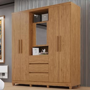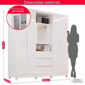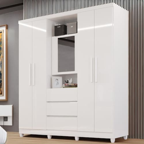 O Guarda Roupas Giga 5 portas possui acabamento em impressão de alta qualidade que garante maior resistência ao móvel, além de um espelho central que vai dar aquele toque de requintado ao seu quarto, gavetas externas com deslize perfeito em corrediça telescópica e pés em PVC de série e prateleiras para melhora acomodar seus pertences. Tudo que seu quarto merece!