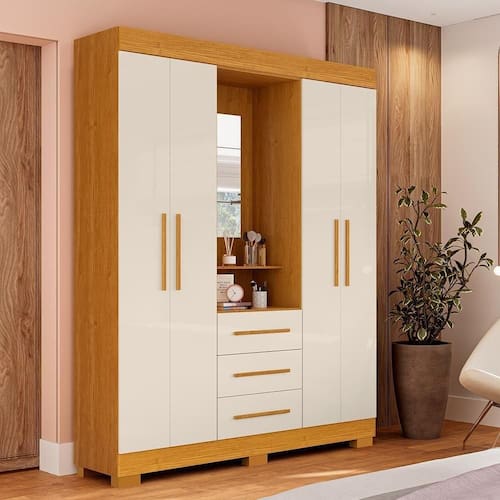 Apresentamos o Guarda-Roupa Mônaco, uma fusão perfeita de estilo e praticidade. Fabricado com 100% MDP, este guarda-roupa oferece durabilidade e resistência superiores. Com suas 4 portas e 3 gavetas equipadas com corrediças telescópicas, oferece um amplo espaço para organizar suas roupas e acessórios com facilidade. Destaque-se com a profundidade na parte central superior, onde um espelho integrado adiciona um toque de charme e funcionalidade ao seu ambiente. O Guarda-Roupa Mônaco é a escolha ideal para quem busca sofisticação e organização. Renove seu espaço com o Guarda-Roupa Mônaco e desfrute do melhor em estilo e conveniência.