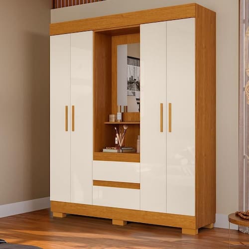 Cor: Bege Médio | Materiais da estrutura: MDP | Tipo de produto: Guarda-roupa Cor: Cinamomo/off White