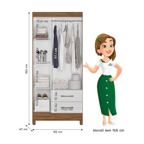 O Guarda-Roupa Lima é uma excelente opção para quem busca um móvel compacto e funcional. Fabricado em MDP, ele possui 3 portas, 2 gavetas externas que são equipadas com corrediças metálicas, garantindo um deslizamento suave e durável, 1 cabideiro, 4 nichos internos e puxadores na cor bronze. Ainda conta com pés em PVC que facilitam a limpeza embaixo do móvel, mantendo o ambiente mais organizado e acessível. Com essas características, ele oferece uma combinação perfeita de funcionalidade e praticidade para seu quarto. CARACTERÍSTICAS TÉCNICAS: - Produzido em MDP; - Cabideiro; - 3 Portas de Giro com Dobradiças Metálicas; - 2 Gavetas com Corrediças Metálicas; - Puxadores na cor Bronze. - Pés em PVC. INFORMAÇÕES TÉCNICAS: Altura: 182 cm Largura: 82 cm Profundidade: 47 cm Peso: 47,7 kg INFORMAÇÕES ADICIONAIS: - Não realizamos a montagem do móvel e não nos responsabilizamos por ela. Verifique o produto antes de montá-lo. Produtos danificados na montagem não serão trocados. Montagem e instalação são por conta do comprador. - As imagens decorativas são ilustrativas e podem conter itens não inclusos. As cores do produto podem variar conforme o monitor, iluminação ou percepção visual. - Limpeza: Use um pano macio seco ou levemente umedecido com água. Não utilize materiais abrasivos como palha de aço ou objetos cortantes. - Garantia de 3 meses contra defeitos de fabricação conforme o Código de Defesa do Consumidor.