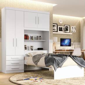 Qualidade e praticidade no guarda roupa Turim com troca flex de tom e cama embutida. O conjunto de 3 gavetas e 2 portas pode ser montado de ambos os lados. Dimensões: Altura: 203 | Largura: 156 cm | Profundidade com cama: 223 cm | Profundidade do guarda roupa: 46 cm Características: - com colchão: 88 cm x 188 cm -não incluso- - Estrutura em MDP de 12, 15 e 25 mm - Pintura UV - Puxador topázio em MDF - Cabideiro de Alumínio - Corrediça metálica - Dobradiça metálica de pressão - A cama pode ser montada do lado direito ou esquerdo - Suporte de peso das gavetas: 5 kg - Suporte de peso das prateleiras: 5 kg - Suporte de peso cama até 70 kg - Garantia de 3 meses ** Imagens ilustrativas. Objetos não acompanham o produto. ** NÃO ACOMPANHA COLCHÃO AVISO: Esclarecemos que a OPÇÃO MÓVEIS se responsabilizará pela entrega dos produtos adquiridos até a porta de entrada ou portaria do endereço indicado, ou seja: é de total responsabilidade do cliente a montagem, desmontagem e instalação do produto adquirido. Para evitar futuros desagrados ou imprevistos com a entrega, também é necessário que o cliente confira as dimensões do produto escolhido, antes de finalizar a compra, devendo certificar-se de que a mercadoria passará normalmente por elevador, porta, escada e corredor. Marca: Não Informado