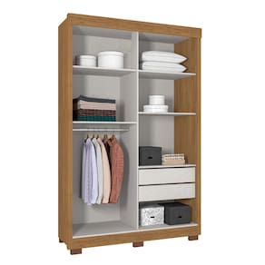 Transforme seu espaço com este elegante guarda-roupa, que conta com duas portas de correr equipadas com roldanas blindadas e um sistema de desempenho para uma abertura suave e duradoura. Além disso, o guarda-roupa possui cinco prateleiras para organizar suas roupas e acessórios, duas gavetas com corrediças telescópicas, trilho inferior em alumínio, trilho superior em PVC, cabideiro em alumínio e pés em PVC. Dê um toque de sofisticação ao seu ambiente combinando funcionalidade e estilo!