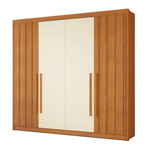 Características: - Estrutura em MDF de 12,15,25 mm - Puxadores em madeira - 04 Gavetas internas com corrediças telescópicas - 02 Portas ripadas e 02 portas lisas - Cabideiros em alumínio - Acabamento/Pintura: Semi-Brilho - Sem pés - Suporte de peso das prateleiras: 10 kg - Suporte de peso das gavetas: 5 kg - Suporte de peso dos cabideiros: 7 kg - Garantia de 3 meses