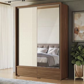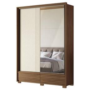 Guarda Roupa Democrata 2 Portas Deslizantes Flex com Espelho e Pés - Santos Andirá - Bege