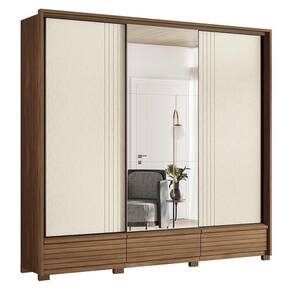 Guarda Roupa Democrata 3 Portas Deslizantes Jatobá/areia Com Espelho E Pés - Santos Andirá Jatobá/areia