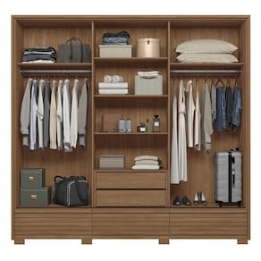 O Guarda-Roupa Democrata 3 Portas Deslizantes é um móvel que se destaca pela sua qualidade excepcional, beleza e elegância. Projetado para atender aos mais exigentes requisitos em termos de funcionalidade e aproveitamento de espaço, este roupeiro apresenta uma estrutura robusta com uma moldura de 25 mm em todo o seu contorno, e amplos cabideiros em alumínio. Com cinco gavetas espaçosas equipadas com corrediças telescópicas, sendo três gavetas externas com frentes e puxadores em MDF e três gavetas internas, este guarda-roupa oferece uma organização eficiente para suas roupas e acessórios. A porta central é adornada por três amplos espelhos que cobrem toda a sua extensão, enquanto as portas laterais apresentam detalhes usinados que proporcionam um elegante efeito ripado, sendo construídas em MDF. O acabamento externo é aplicado com tecnologia Reverse, conferindo-lhe um toque levemente texturizado e semi fosco. Este móvel é fabricado seguindo rigorosos padrões de sustentabilidade e preservação ambiental, sendo uma excelente escolha para quem busca um guarda-roupa espaçoso com a praticidade das portas deslizantes.