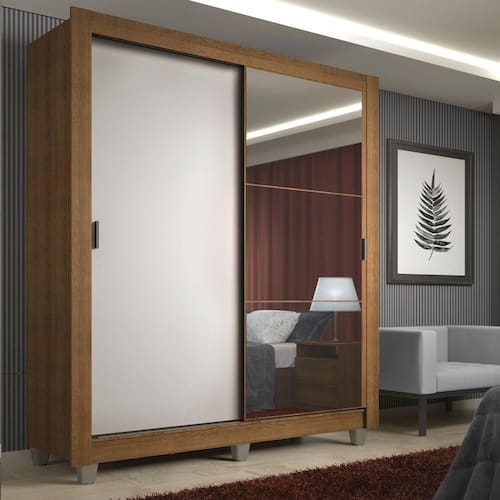 - Guarda-roupa com duas portas de correr de deslizamento suave.