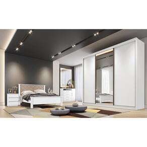 Caracteristicas: Tipo de pintura: UV Origem do produto: Nacional Ambiente principal: Quarto Material principal: MDF Possui portas: 03 Possui espelho: Sim -com pelicula protetora- Possui prateleiras: 08 Possui gavetas: 06 Possui chave e tranca: Nao Tipo de portas: Correr Tipo de puxador: Aluminio Complexidade da montagem: Medio Sistema de montagem: Parafusos e cavilhas Possui pes: Sapatas de plastico Rodizio com trava: Nao Altura dos pes: Nao Material dos pes: PVC
