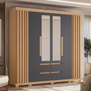 Guarda Roupa Doble Casal 6 Portas Com Espelho Albatroz Freijó/titanium Guarda Roupa Doble Casal 6 Portas com Espelho Albatroz Caracteristicas do Produto: O Guarda Roupa Doble Casal 6 Portas com Espelho da marca Albatroz e a solucao ideal para quem busca funcionalidade e estilo em um unico movel. Com dimensoes generosas de 240 cm de largura e 230 cm de altura, ele oferece amplo espaco para organizar suas roupas e acessorios. Suas seis portas de dobradia garantem facil acesso ao conteudo, enquanto as quatro gavetas proporcionam um pratico para itens menores.
