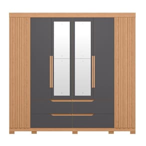 Produto: Guarda Roupa Doble Casal com Espelho Cor: Freijó/Titanium Portas Laterais Com Acabamento Ripado, 04 Gavetas Com Puxadores Cava E Corrediças Telescópicas, Puxadores De Mdf Revestidos, Cabideiros Em Alumínio, Pés Inclusos. Escala de Brilho: Fosco Altura (m): 2,3 Largura (m): 2,4 Profundidade (m): 0,47 Peso (kg): 162,5 Material: MDP Acabamento: Pintura Uv Material do Puxador: Mdf Revestidos Tipo de Cabideiro: Alumínio Quantidade de Gavetas: 4 - Tipo de Corrediça: Telescópicas Quantidade de Portas: 6 - Tipo de Porta: Bater Quantidade de Prateleiras: 10 Rodízios: Não Quantidade de Pés: 10 - Material dos Pés: ABS Necessita Montagem: SIM Espelho: Kit 4 Espelhos Parafusados Na Porta 0,70 X 0,30 M (Cada) Manutenção: Limpar Com Flanela Ou Pano Macio Seco, Não Utilizar Produtos Abrasivos, Desengordurantes, Álcool Ou Solvente. Não Expor O Produto Diretamente À Luz Solar E À Umidade. Garantia: 3 Meses