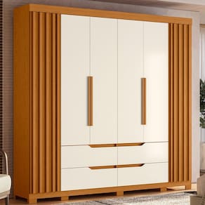 Quantidade de portas: 06, sendo 2 portas com acabamento ripado;
