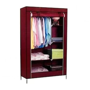 Guarda Roupa Duplo Cabideiro Arara 5 Prateleiras Armario Compacto Organizador Portatil Vermelho