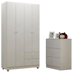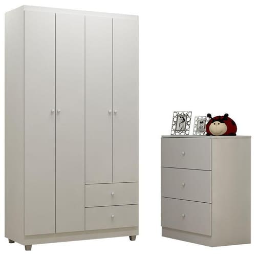 Guarda Roupa 4 Portas e Cômoda Infantil Louise Branco Brilho - AJL