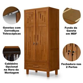 Características Armário de Roupas 100% Madeira 2 Portas 1 Gaveta: