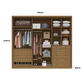 Guarda Roupa Enseada Casal 6 Portas 9 Gavetas Rimo O Guarda Roupa Enseada Casal 6 Portas 9 Gavetas Rimo é espaçoso e oferece a solução ideal para organizar suas roupas e acessórios. Com 6 portas e 9 gavetas, o modelo maximiza o espaço de armazenamento no seu quarto. Seu design elegante e acabamento de alta qualidade complementam diversos estilos de decoração. É a escolha perfeita para casais que buscam funcionalidade e beleza. Desfrute de um ambiente mais organizado e harmonioso com este móvel robusto e bem planejado.\nMEDIDAS\nAltura 240 cm\nLargura 276 cm\nProfundidade 60 cm\nCARACTERÍSTICAS\nFabricante Rimo\nModelo Guarda Roupa Enseada\nGarantia 3 meses\nTipo de produto Guarda Roupa Casal\nAmbiente Quarto\nEstrutura MDF\nQuantidade de Portas 06\nQuantidade de Gavetas 09, sendo 02 com chave\nTipo de Porta Bater\nTipo de Corrediça Telescópica\nTipo do Puxador Cava\nAcabamento Pintura UV\nNecessita Montagem Sim\nAcompanha Manual de Instalação Sim\nINFORMAÇÕES IMPORTANTES\nObjetos decorativos que porventura apareçam na foto, não acompanham o produto. Não nos responsabilizamos pela montagem/instalação dos produtos.\nMontagens, desmontagens e instalações são responsabilidades do cliente. Indicamos que contrate uma empresa de montagem ou um montador de sua confiança.\nAlém disso, favor verificar se os pés e acessórios estão dentro do forro inferior do produto. Em suma, todas as informações divulgadas sobre o produto são de responsabilidade do Fabricante.\nAs cores do produto podem variar de acordo com o seu monitor, a iluminação do ambiente em que você está e até mesmo a sua percepção visual. Além da cor, pequenos detalhes e acabamentos podem não ficar evidentes na foto, por isso as imagens são meramente ilustrativas