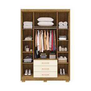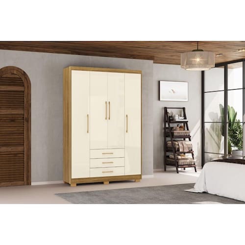 Guarda Roupa Espanha 4 Portas e 3 Gavetas - Cor Nature / Champanhe - Vila Rica - Marrom