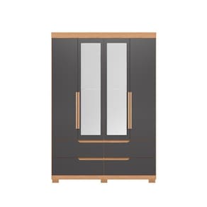 Feito em MDP.Possui detalhes nas portas laterais com acabamento ripado, 4 gavetas com corrediça telescópicas, 4 portas, 2 cabideiros e 10 prateleiras