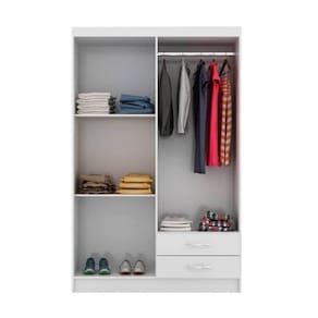 O Guarda Roupa Evidencia 4 Portas, estrutura em MDP de 12mm e 15mm, acabamento com pintura em Branco (Brilho). Portas com dobradiças metálicas, gavetas com corrediças plásticas, puxadores, cabideiro em madeira. Este móvel chegará em sua casa separado em 01 volume.