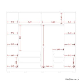 Dimensões Altura: 235 cm Largura: 270 cm Profundidade: 56 cm Peso: 199,25 kg