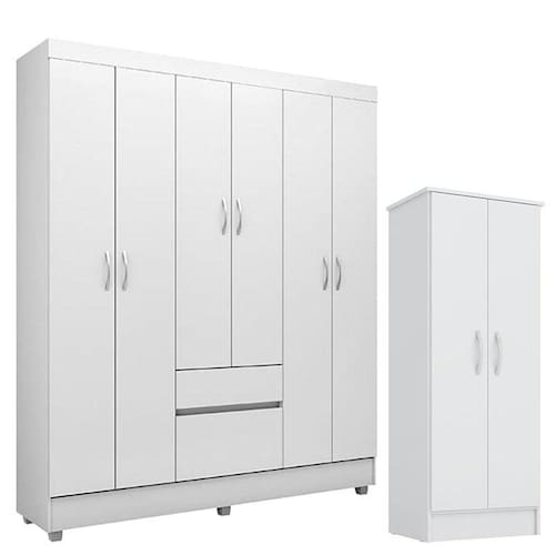 Guarda Roupa Flash 2 e Armário Multiuso Viena Branco Brilho - Demóbile