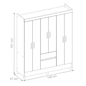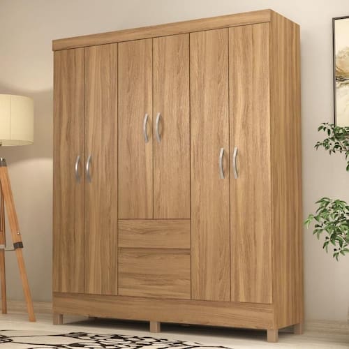 Feito em MDP, além de possuir6 portas, 2 gavetas,1 prateleiras e 3 cabideiros.