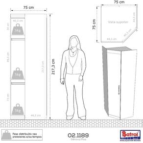 Dimensões: Altura: 217,3 cm | Largura: 75 cm | Profundidade: 75 cm