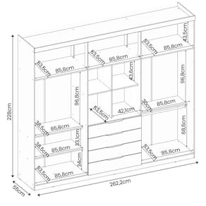 Dimensões: 262,2 cm(L) x 228 cm(A) x 55 cm(P);