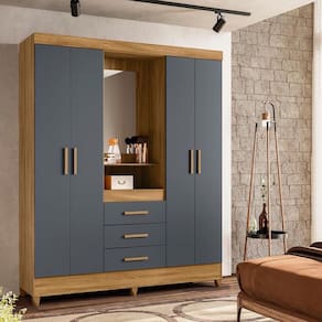 Guarda Roupa Grande Quarto Capri 4 Portas 3 Gavetas Espelho Freijo Com Cinza Com design moderno e estrutura funcional, o Guarda-Roupa Capri é perfeito para quem busca praticidade e estilo em um único móvel. Seu formato com 4 portas de giro e 3 gavetas oferece amplo espaço para roupas, calçados e acessórios, garantindo organização e conforto no dia a dia.O modelo faz parte da linha Smart, combinando elegância e durabilidade. As gavetas com corrediças metálicas proporcionam deslizamento suave, enquanto os cabideiros e calceiros em alumínio garantem resistência. Os puxadores em MDF e os pés em PVC completam o conjunto, oferecendo acabamento refinado e facilidade de limpeza.Dimensões:Altura: 204 cmLargura: 165 cmProfundidade: 47 cmDiferenciais:- 4 portas de giro com ótimo aproveitamento interno- 3 gavetas amplas com corrediças metálicas resistentes- Cabideiro e calceiro em alumínio para melhor organização- Puxadores em MDF, com toque moderno e ergonômico- Pés em PVC que facilitam a limpeza e protegem o móvel da umidade- Estrutura robusta e compacta, ideal para diversos tipos de quarto- Design da linha Smart, unindo praticidade e elegância Marca: Não Informado