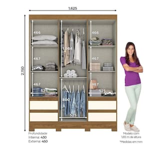 Guarda Roupa Henn Briz 3 Portas 4 Gavetas Nature Off White