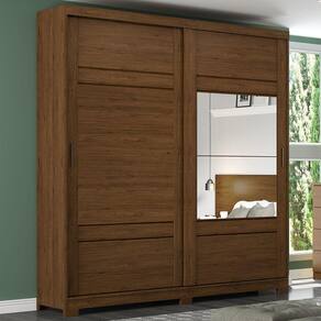 Possui portas: 02 Tipo das portas: deslizantes Portas divididas com acabamento soft Porta com 2 espelhos Possui gavetas: 03 gavetas Gavetas internas Possui corrediças: Sim, tipo metálicas Cabideiros em alumínio Puxadores em alumínio com acabamento bronze Pintura: UV - Ultravioleta Portas com molduras de 25mm