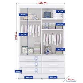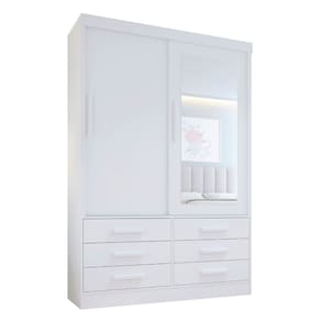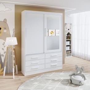 O Guarda Roupa Carrossel 02 portas de correr traz a combinação perfeita, com ótima disposição interna, modernidade e durabilidade. Ele conta com 06 espaçosas gavetas, com corrediças telescopicas, 02 cabideiros e ainda 02 compartimentos de maleiro.Ele é confeccionado em MDF( portas, frente de gavetas e moldura superior) e todo em chapa de 15mm , conferindo maior resistência e qualidade. Atenção: A coloração das imagens do produto pode ter diferentes tonalidades dependendo do seu monitor. Ao receber o produto verifique as seguintes informações: Confira a quantidade de caixas e volumes; Consulte se o nome do comprador consta em todas as etiquetas; Verifique se as caixas não apresentam sinais de danos ou violação; O ESPELHO É FIXADO POR FITA DUPLA FACE 3M E COLA PROFIXA, ESPECIAL PRA ESPELHO Acabamento da Gaveta: Pintura UV Acabamento da Porta: Pintura UV Acabamento da Prateleira: Pintura UV Altura do Espelho: 120 cm Ambiente Principal: Quarto Infantil Complexidade da Montagem: Alta: deve ser montado por um montador especializado Cor: Branco Cor do Produto: Branco Cor Flex: Não Cor Interna: Branco Escala de Brilho: Brilhante Escala de Brilho da Gaveta: Brilhante Escala de Brilho da Porta: Brilhante Escala de Brilho da Prateleira: Brilhante Espessura do Espelho: 3 mm Fita Integrada: Sim Formato do Espelho: Retangular Gaveta com Chave: Não Informações Complementares: O Espelho É Fixado Por Fita Dupla Face 3M E Cola Profixa, Especial Para Espelho Itens Inclusos: 1 Guarda Roupa, Kit Ferragens e Manual de Montagem Largura do Espelho: 48 cm Linha ou Coleção: Carrossel Manual de Montagem e Instalação: https://cdn2.madeiramadeira.com.br/atributo/d-doro-moveis/2064987-5411-1718888004478.pdf Material da Gaveta: MDF/MDP Material da Porta: MDF Material da Prateleira: MDP Material do Puxador da Porta: Madeira Maciça Material Principal: MDF/MDP modular: Não Necessita Montagem: Sim Origem do Produto: Nacional Peso: 117,5 kg Peso Máximo por Gaveta: 8 kg Peso Máximo por Prateleira: 12 kg Possui Cabideiros: 02 Possui Calceiros: Não Possui Espelho: 01 Possui Organizador de Gaveta: Não Possui Pés: Não Possui Portas: 02 Possui Prateleiras: 01 Quantidade de Gavetas: 06 Gavetas Recomendações de Uso, Manutenção e Limpeza: Pano levemente umedecido e pano seco. Não utilizar produtos de limpeza e abrasivos Sistema de Montagem: parafuso / cavilhas Tipo de Corrediça da Gaveta: Metálica Telescópica Tipo de Dobradiça/Corrediça da Porta: Alumínio Tipo de Fixação do Espelho: Fita Dupla Face Tipo de Gaveta: Externa Tipo de Guarda-Roupa: Infantil Tipo de Puxador da Porta: Externo
