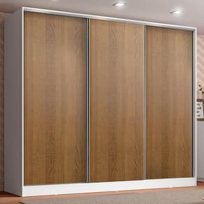 - Itens inclusos: Três (3) cabideiros | Quatro (4) gavetas internas | Oito (8) prateleiras | Três (3) portas de correr com sistema anti-descarrilhamento