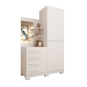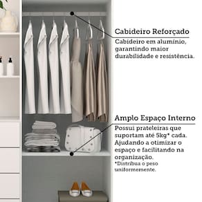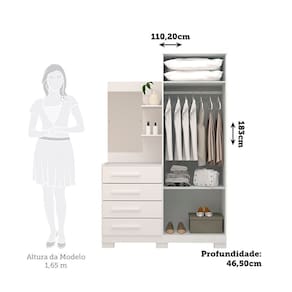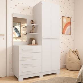 O Guarda Roupa 2 portas com cômoda Auris garante ao seu quarto mais beleza e praticidade ao seu dia-a-dia. Produzido em 100% MDF com excelente espaço interno, gavetas espaçosas com corrediças telescópicas metálicas, possui penteadeira com espelho, cabideiro em alumínio, possui pés que facilitam a limpeza abaixo do móvel. Acabamento da Prateleira: Pintura UV Escala de Brilho da Prateleira: Semi-Brilho Acabamento da Gaveta: Pintura UV Escala de Brilho da Gaveta: Semi-Brilho Possui Organizador de Gaveta: Não Acabamento da Porta: Pintura UV Escala de Brilho da Porta: Semi-Brilho Material do Puxador da Porta: MDF Acabamento dos Pés: Pintura Altura do Espelho: 60 cm Altura dos Pés: 5 cm Altura Máxima dos Pés: 5.0000 codigo_ean: 7900288191410 Complexidade da Montagem: Média: pode ser montado por mais de uma pessoa e/ou necessite de maior conhecimento para montagem Cor: Branco/Rosa/Azul/Lilas Cor da Porta: Branco Cor do Produto: Branco/Rosa/Azul/Lilás Cor do Puxador: Branco Cor Flex: Sim Cor Interna: Branco Escala de Brilho: Semi-Brilho Espessura do Espelho: 3 mm Formato do Espelho: Retangular Gaveta com Chave: Não Guarda-Roupa Suporta Até (kg): 60 kg Itens Inclusos: 1 Guarda-Roupa com Cômoda, Kit Ferragens e Manual de Montagem Largura do Espelho: 35 cm Linha ou Coleção: Auris Manual de Montagem e Instalação: https://product-hub-prd.madeiramadeira.com.br/803368887/documents/a3ea4461-6518-44c0-a1d8-e97c99d322ba3057995453317520064117677.pdf Marca: Espresso Móveis Material da Gaveta: MDF Material da Porta: MDF Material da Prateleira: MDF Material dos Pés: ABS Material Principal: MDF modular: Não Montagem Flex: Não Necessita Montagem: Sim Nicho com Cabideiro: Não Origem do Produto: Nacional Peso: 58,8 kg Peso Máximo por Gaveta: 5 kg Peso Máximo por Prateleira: 5 kg Porta Janelada: Não Possui Calceiros: Não Possui Capelinha: Não Possui Ganchos: Não Possui Nichos: Não Possui Penteadeira: Sim Possui Pés: 06 Possui Portas: Sim Possui Prateleiras: Sim Produto Montado: Sim Quantidade de Cabideiros: 01 Cabideiro Quantidade de Espelho: 01 Quantidade de Gavetas: 04 Gavetas Quantidade de Prateleiras: 02 Prateleiras Recomendações de Uso, Manutenção e Limpeza: Para limpar não use nenhum tipo de produto, tais como sabão, esponja de aço, álcool e lustra-móveis. Use somente uma flanela seca. Não molhe nem exponha o móvel à umidade ou a luz solar diretamente ou outra forma de calor. Não encoste o móvel na parede. Não o arreste. Se precisar mudar o móvel de lugar, esvazie por completo o móvel, não o arraste, com ajuda de outras pessoas suspenda o móvel de forma segura e o posicione no lugar desejado. Sapatas Niveladoras: Não Sistema de Montagem: Parafusos, Minifix e Cavilhas Suporta Até (kg): 60 kg Tipo de Corrediça da Gaveta: Metálica Telescópica Tipo de Dobradiça/Corrediça da Porta: Metálica Tipo de Fixação do Espelho: Parafusos Tipo de Gaveta: Externa Tipo de Guarda-Roupa: Infantil Tipo de Puxador da Porta: Externo