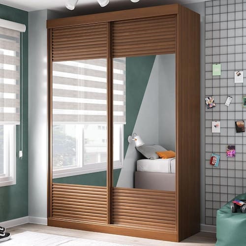 Guarda-Roupas Infantil 2 Portas com Espelho Samambaia Teen CabeCasa MadeiraMadeira Freijó. Um quarto moderno precisará de um móvel diferenciado, o Guarda Roupas 2 portas de correr Samambaia Teen traz a combinação perfeita, com ótima disposição interna e modernidade, esse móvel faz parte de uma linha de produtos que está disponível no mercado, sendo assim uma linha completa para formar seu ambiente e para total conforto, modernidade e durabilidade, o armário possui 2 portas de correr, com opções com e sem espelho, a porta conta com detalhes ripado em MDF que é uma tendência, tornando o móvel moderno, ele é confeccionado em MDP de 15mm e MDF para maior resistência, possui várias repartições para armazenar roupas e objetos, molduras nas portas em MDF 25 mm. Materiais de primeira qualidade que respeitam o meio ambiente.