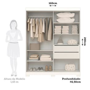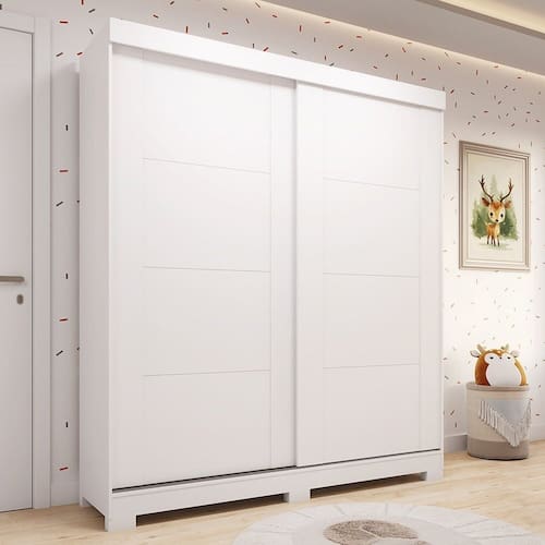 Que tal redecorar seu quarto com muito estilo e qualidade? O Guarda Roupas Fantelli é perfeito para essa proposta. Desenvolvido em 100% MDF e acabamento em Pintura UV, oferece ao ambiente todo charme das tendências atuais de decoração e a garantia de maior resistência. Também conta com divisões bem distribuídas em seu interno, com 4 prateleiras e 2 gavetas de corrediças telescópicas. Seu cabideiro e os trilho inferior são em alumínio. Aproveite e adquira já o seu! Acabamento da Prateleira: Pintura UV Escala de Brilho da Prateleira: Semi-Brilho Acabamento da Gaveta: Pintura UV Escala de Brilho da Gaveta: Semi-Brilho Possui Organizador de Gaveta: Sim Acabamento da Porta: Pintura UV Escala de Brilho da Porta: Semi-Brilho Acabamento dos Pés: Pintura Altura dos Pés: 5 cm Altura Máxima dos Pés: 5.0000 codigo_ean: 7900288191588 Complexidade da Montagem: Alta: deve ser montado por um montador especializado Cor: Branco Cor da Porta: Branco Cor do Produto: Branco Cor Flex: Não Cor Interna: Branco Escala de Brilho: Semi-Brilho Gaveta com Chave: Não Guarda-Roupa Suporta Até (kg): 75 kg Itens Inclusos: 1 Guarda-Roupa, Kit Ferragens e Manual de Montagem Linha ou Coleção: Fantelli Manual de Montagem e Instalação: https://product-hub-prd.madeiramadeira.com.br/804666452/documents/dd1ba423-6176-4244-9955-d59f525beb393056972453317519948143253.pdf Marca: Espresso Móveis Material da Gaveta: MDF Material da Porta: MDF Material da Prateleira: MDF Material dos Pés: ABS Material Principal: MDF modular: Não Montagem Flex: Não Necessita Montagem: Sim Nicho com Cabideiro: Não Origem do Produto: Nacional Peso: 93 kg Peso Máximo por Gaveta: 5 kg Peso Máximo por Prateleira: 5 kg Porta Janelada: Não Possui Calceiros: Não Possui Capelinha: Não Possui Espelho: Não Possui Ganchos: Não Possui Nichos: Não Possui Penteadeira: Não Possui Pés: 06 Possui Portas: Sim Possui Prateleiras: Sim Produto Montado: Sim Quantidade de Cabideiros: 01 Cabideiro Quantidade de Gavetas: 02 Gavetas Quantidade de Prateleiras: 04 Prateleiras Recomendações de Uso, Manutenção e Limpeza: Para limpar não use nenhum tipo de produto, tais como sabão, esponja de aço, álcool e lustra-móveis. Use somente uma flanela seca. Não molhe nem exponha o móvel à umidade ou a luz solar diretamente ou outra forma de calor. Não encoste o móvel na parede. Não o arreste. Se precisar mudar o móvel de lugar, esvazie por completo o móvel, não o arraste, com ajuda de outras pessoas suspenda o móvel de forma segura e o posicione no lugar desejado. Sapatas Niveladoras: Não Sistema de Montagem: Parafusos, Minifix e Cavilhas Suporta Até (kg): 75 kg Tipo de Corrediça da Gaveta: Metálica Telescópica Tipo de Dobradiça/Corrediça da Porta: Alumínio Tipo de Gaveta: Interna Tipo de Guarda-Roupa: Infantil Tipo de Puxador da Porta: Não Possui