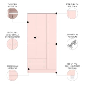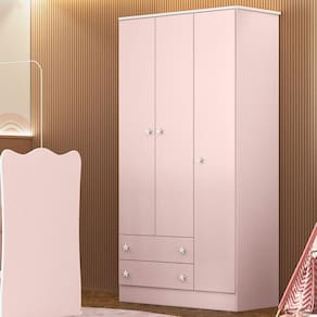 Conheça o Guarda Roupa Infantil 3 Portas 2 Gavetas Doce Sonho Rosa da Qmovi, a escolha perfeita para quem busca um móvel espaçoso e prático para o Quarto Infantil.