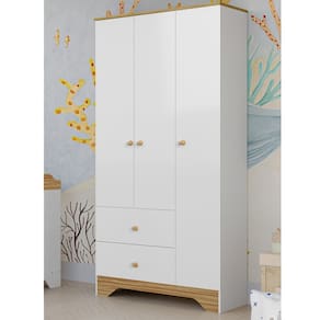 Guarda Roupa Infantil 3 Portas 2 Gavetas MDF Bên Plus Móveis Peroba - Off White