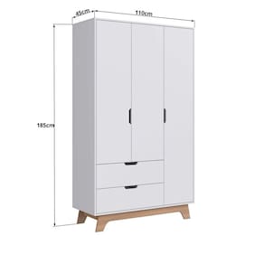 Com design clean e funcional, ele é produzido 100% em MDF 1,5cm, com fundos em 0,6cm e acabamento de alta qualidade. Conta com gavetas com corrediças telescópicas, tubo e suporte cabideiro em metal, e puxadores embutidos, que garantem segurança e um visual moderno.