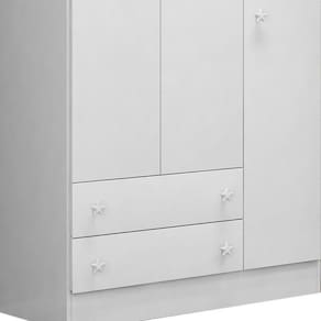 Guarda Roupa Infantil 3 Portas E 2 Gavetas Doce Sonho Branco - Qmovi Branco Guarda Roupa Infantil 3 Portas e 2 Gavetas Doce Sonho - Qmovi Com o Guarda-Roupa Doce Sonho você terá maior funcionalidade e elegância no quarto do bebê. Ele conta com amplo espaço para guardar e organizar os pertences de forma funcional para o dia a dia. Seus puxadores exclusivos em forma de estrela vão transformar o ambiente deixando-o mais divertido e charmoso. ESPECIFICAÇÕES: - Estrutura em MDP - Pintura UV atóxica - 3 Portas - 2 Gavetas - Corrediças metálicas - Puxadores em forma de estrela - Prateleiras - Cabideiro - Maior organização e praticidade